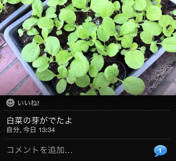 で、先ほどの共有一覧でFacebookを選択すると、このようにFacebookに投稿できました。