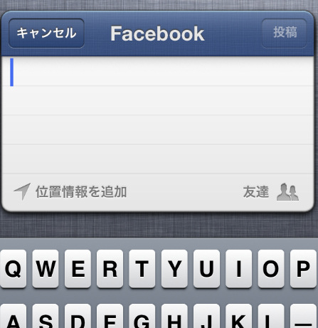 「タップで投稿」の方をタップすると、Facebookの入力欄が表示されました。