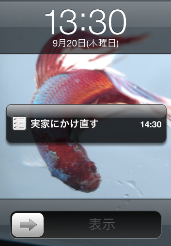 リマインダーに登録すると、やはりこのようにスリープ画面に表示されます。