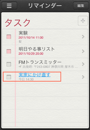 リマインダーをたちあげてみると、ちゃんと登録されていました。