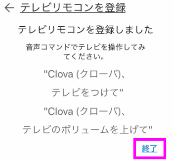 ちなみにClovaを使ったテレビのリモコンの操作のコマンドはこんな感じ。
