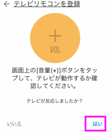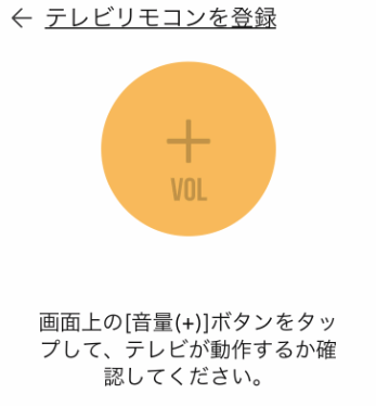 黄色の大きな丸をタップしてテレビのボリュームが大きくなるか確認してください。