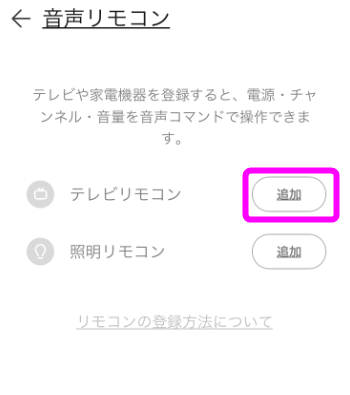 今の段階(2017年10月)では「テレビリモコン」と「照明リモコン」しか登録できません。(さらに言うと照明リモコンもまだ設定できません)