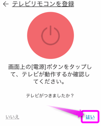 もし、テレビが点灯しない場合、スピーカーの位置が悪いのかもしれません。いろいろ位置を変えてみて、「いいえ」をタップしてチャレンジしてみてください。