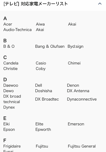 テレビのメーカーの一覧が表示されました。自分の所有しているテレビのメーカーをタップします。