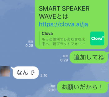 動画を見てもらえればWAVEのClova経由で友だちにメッセージを送る方法がわかると思いますが、一応手順を紹介します。
