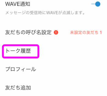 WAVEに届いたメッセージを確認するには、アプリの「トーク履歴」をタップします。
