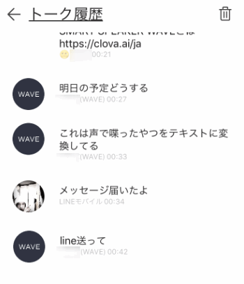 するとWAVEに届いたメッセージの履歴が表示されます。