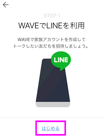 WAVEでLINE利用が表示されたら、「始める」をタップします。