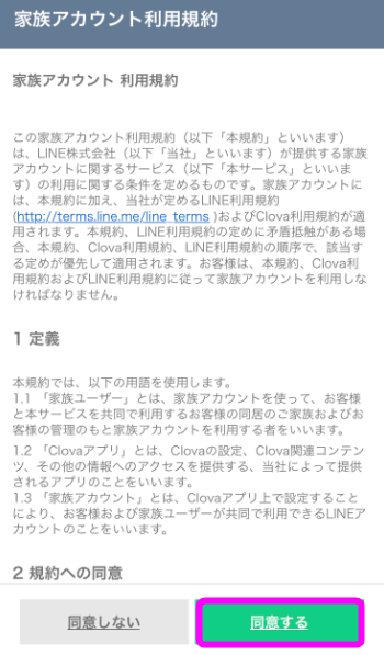 「家族アカウント利用規約」が表示されるので、「同意する」をタップします。