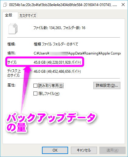 そのため、バックアップファイルだけで45GB以上になることもしばしばでした。