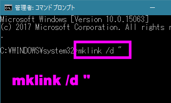 mklink : 用語 'mklink' は、コマンドレット、関数、スクリプト ファイル、または操作可能なプログラムの名前として認識されません。名前が正しく記述されていることを確認し、パスが含まれている場合はそのパスが正しいことを確認してから、再試行してください。