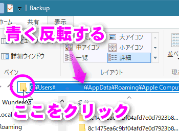たぶん・・・ですが、Cドライブのシンボリックリンク(Backupフォルダ)を開き、バックアップされたフォルダを開くと、エクスプローラーのパスが、