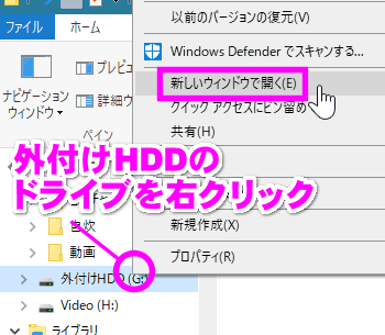このフォルダを開くと、外付けのHDDに作成したフォルダが開き、あたかもCドライブにあるかのような振る舞いをします。