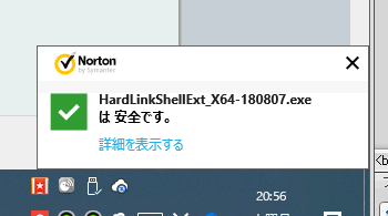 ノートンでダウンロードしたファイルをスキャンしましたが、安全と出ました。