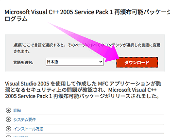 Microsoft Visual C ++ 2005再頒布可能パッケージ