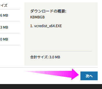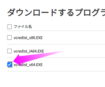 ダウンロードした「vcredist_x64.exe」を立ち上げます。