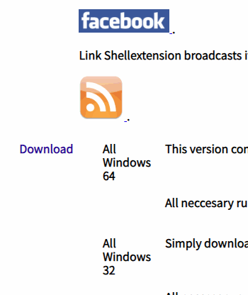「Link Shell Extension」は2つありますが、上の方は64ビット。下が32ビット版です。いまのWindowsはほとんどが64ビット版なので上の「Link Shell Extension」をクリックしてください。