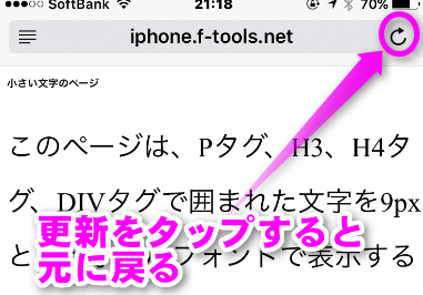 残念ながらこの方法は、新たにページを表示させたり、更新をタップすると元に戻ってしまいます。