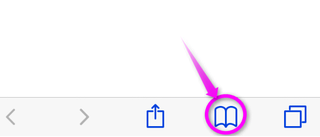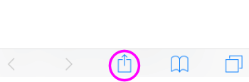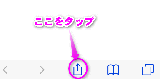 Safariで好きなページを表示させ、画面中央下の共有ボタン(丸で囲った部分)をタップします。