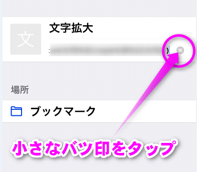 URLの部分をタップすると、小さなバツじるしが表示されるので、ここをタップします。