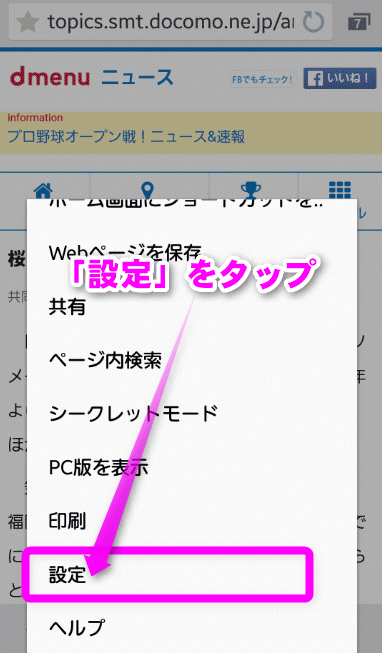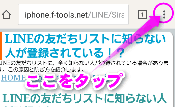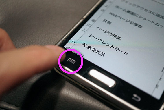 Galaxyでサイトの文字を大きくするには、まず、メニューボタンをタップします。