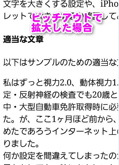 ページを拡大するには、2本の指でピンチアウトでも拡大できます。が、この場合・・・