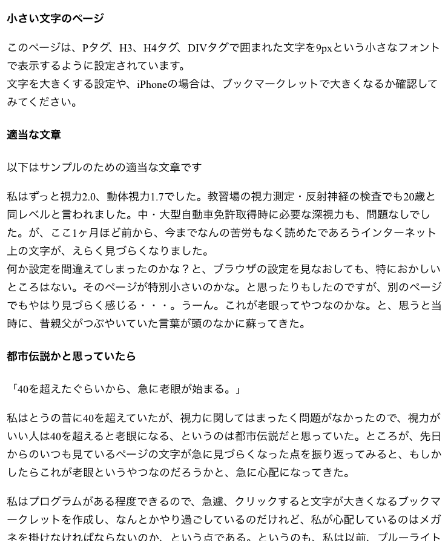 さいごに紹介するのは「ブックマークレット」という方法で文字を大きくする方法を考えてみました。