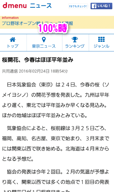 このSafariの文字の拡大縮小の便利なところは、一度拡大させると、同じドメインであれば別のページや次回同じページを開いた場合でも、拡大率は維持される点です。