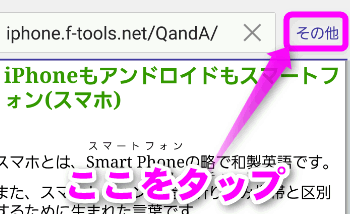 小さなフォントが使われているページ、サイトを表示させたら、URL欄の左側(丸で囲った部分)をタップします。