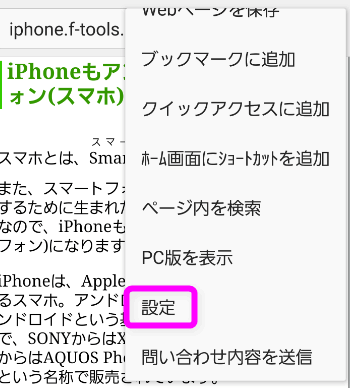 このリーダー表示にすると広告や余計なリンク、画像を非表示にして読みやすくなり、フォントの大きさも自由自在になります。