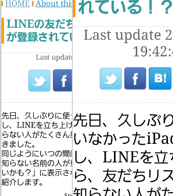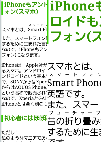 Safariの文字の拡大・縮小昨日はきちんと画面の端で改行してくれます。