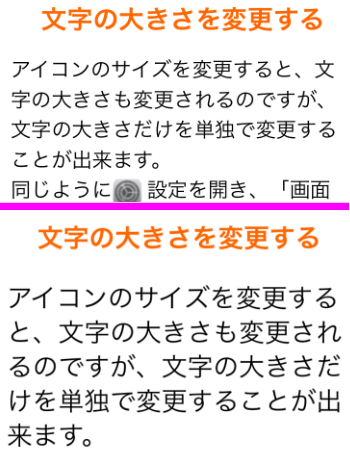 なお、iPhoneのすべてのフォントを大きくするには、iPhoneのアイコンのサイズや文字の大きさを変更するを参考にしてください。