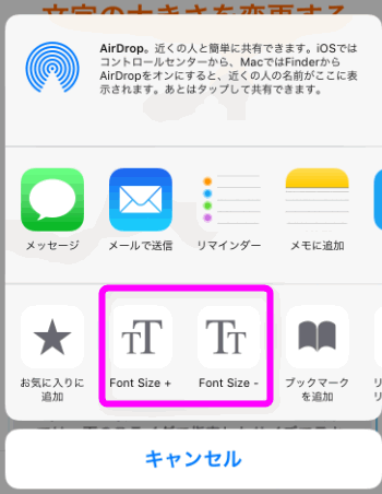Safariで見ているページのフォントの大きさを自由に調節できるFont Size App Extensionというアプリもあります。