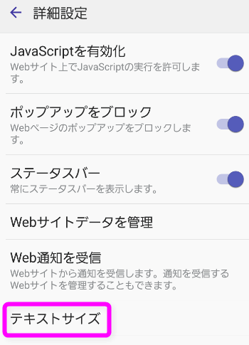 アンドロイドの場合は、一度この設定にするとずっとこの設定のままフォントが大きくなります。