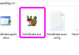 解凍したファイルの中から「Handbrake.exe」をダブルクリックして起動させます。