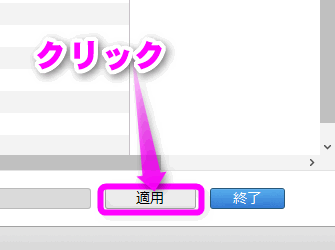 iTunesの右下の「適用」をクリックすると、iPhoneに転送(同期)が始まります。