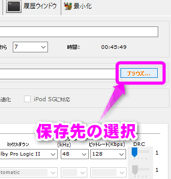 DVDをiPhoneで見られる形式のファイルに変換する保存先を決めます。