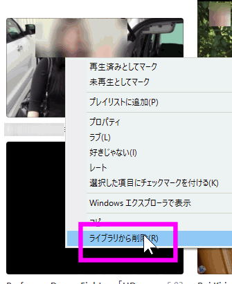 不要な動画を右クリックし、「ライブラリから削除」を選択します。