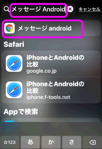 iPhoneのspotlight検索を使うと、検索結果の一番上がChromeのGoogleで検索する表示になりました。
