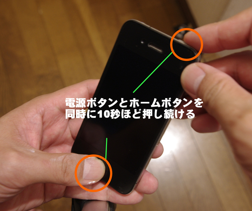 電源ボタン・ホームボタンを 長く 押して、15秒