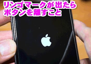 リンゴのマークが出たら、電源ボタンから手を離してください。(押し続けると、また電源が消える)