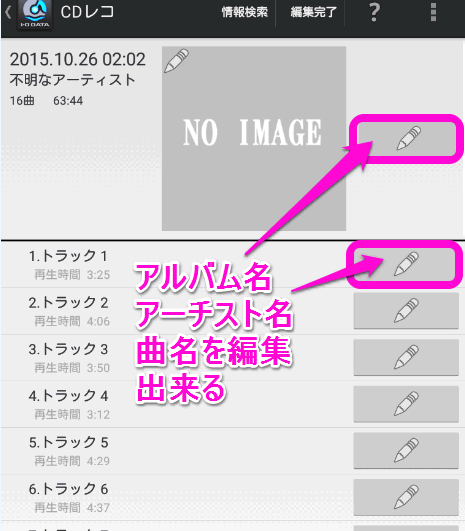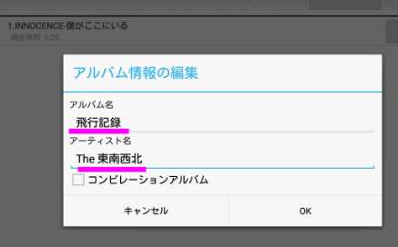 こんな感じでアルバム名とアーチスト名を入力したところです。