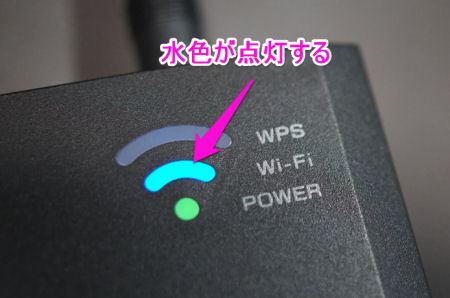 水色のランプが点灯するのを確認します。(1分ぐらいかかります)
