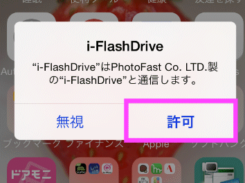 PhotoFastの素晴らしい商品をぜひご購入ください」というようなエラーが表示された場合は、アプリを終了し、もう一度i-FlashDriveを繋ぎ直してみてください。