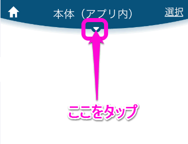 ちょっとわかりにくいのですが、「本体(アプリ内)」の下にある ▼ をタップします。