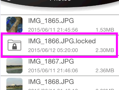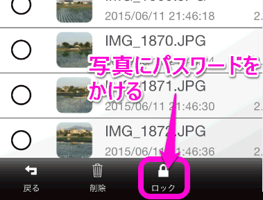 パスワードを設定した写真は、このようにカギのマークのアイコンになります。