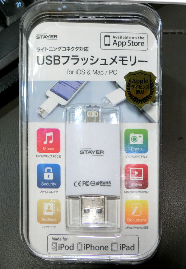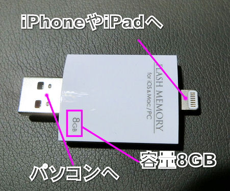 パソコンが有る人は、このUSBメモリを経由してiPhoneなどに写真や動画、音楽ファイルなどをコピーしたりも出来ます。