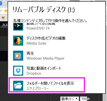 i-FlashDriveをパソコンに挿すと、右上に通知が表示されるので、ここをクリックします。