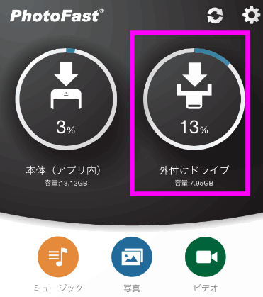 このボタンは、iPhoneにi-FlashDriveを繋げていないとタップできないようになっています。